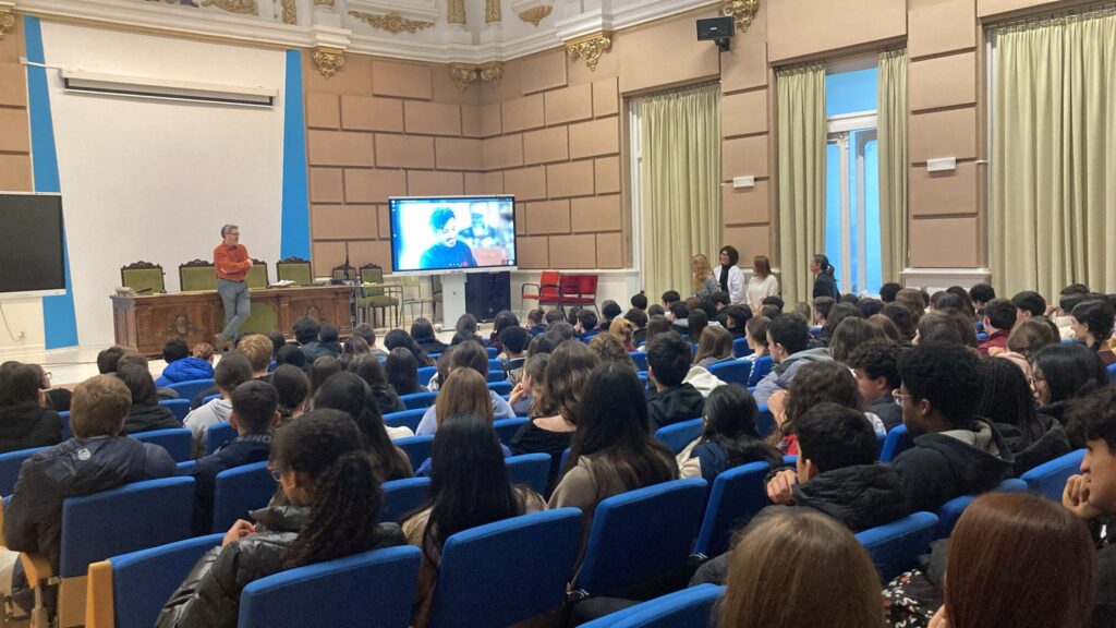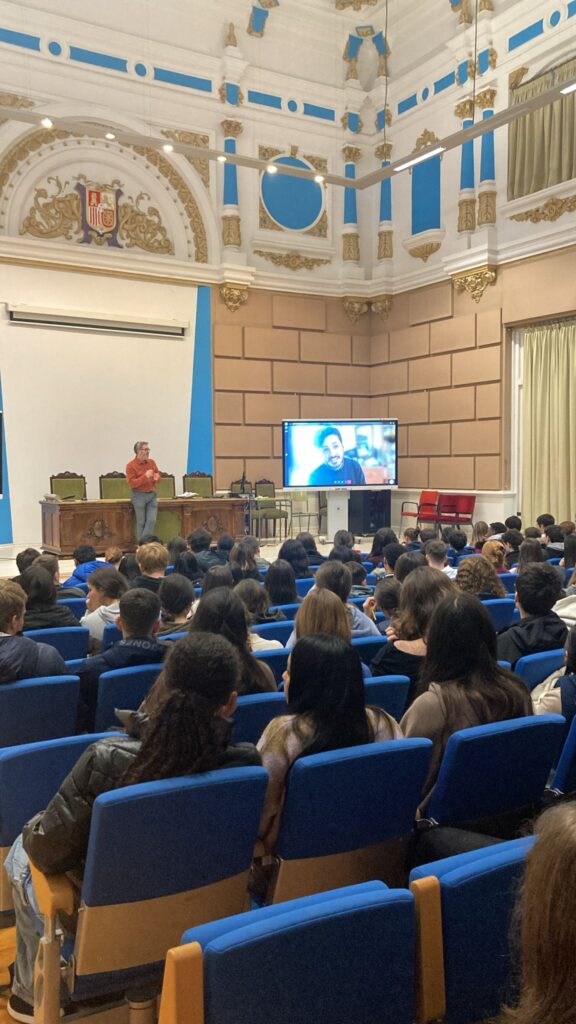 Este trabajo se está llevando a cabo con todo el alumnado de 1º de Bachillerato y con el grupo de Literatura y cine de 2º de Bachillerato para conseguir como objetivo, como producto final, que el alumnado sea capaz de realizar una reseña y para ello tuvimos un encuentro virtual el lunes 24 de noviembre en el Salón de Actos con Pablo Giraldo, Director de Comunicación del Centro Cultural Matadero Madrid, que es un centro de creación contemporánea promovido por el Ayuntamiento de Madrid.